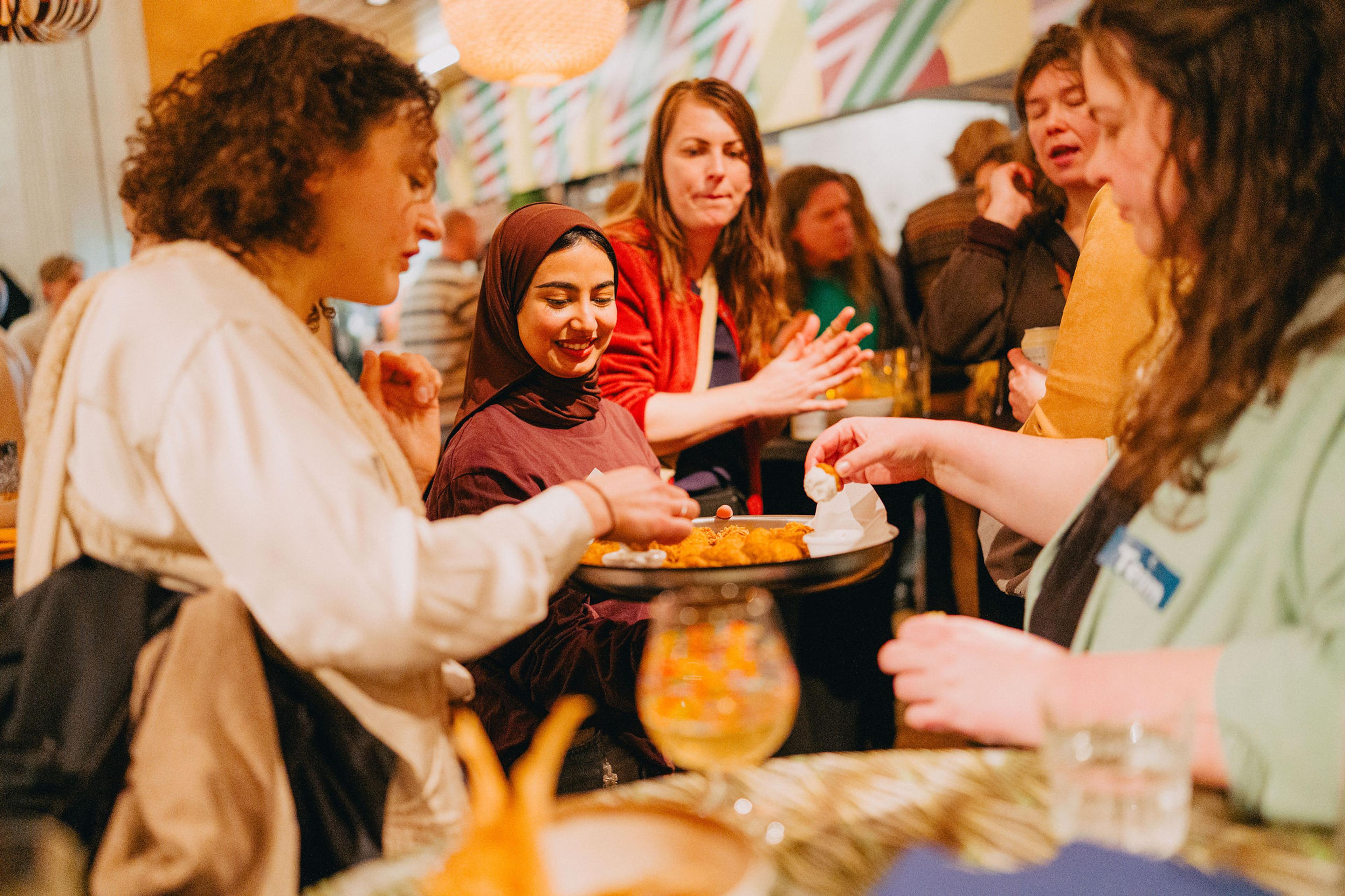 Tussen de bankgesprekken door schoof Khaled Zedan aan bij het koffiezetapparaat. A Beautiful Mess, waar hij werkt, is geen gewoon restaurant. Het is een ruimte waar mensen van verschillende achtergronden en culturen elkaar ontmoeten – een veilige omgeving om van elkaar te leren. Khaled vertelde over de Community Meals die wekelijks plaatsvinden, en over het trainingsprogramma Restart, waarmee nieuwkomers geholpen worden aan werk. Niet alleen in Utrecht en Amsterdam, maar sinds juni ook in Arnhem bouwt A Beautiful Mess aan gemeenschappen waarin cultuur, ontmoeting en werk samenkomen.